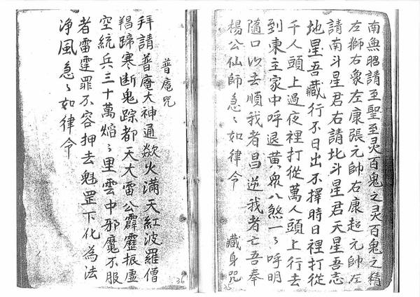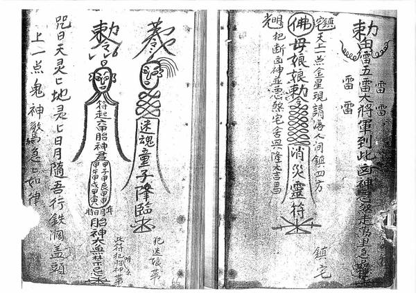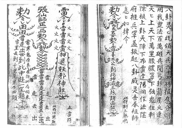 九良星咒曰、夜眠着惊符粘帐上、普俺咒、此符治三煞用、五雷符、化在桥前、此寒符、治热病、鼻血流不止、止血符、