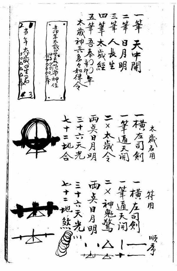 收三煞符式、犯三煞符贴门上碍煞方一道、犯三煞用符化水食、墓中犯三煞、收到杀方用全香、三煞符、藏身符法式、