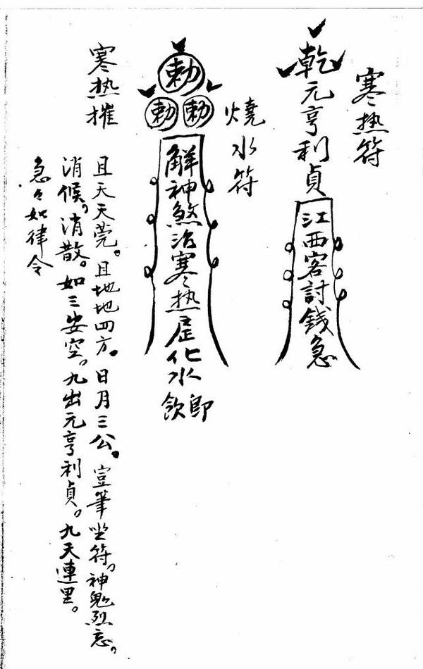 治寒热符、治寒热用符化水、退病带病化食、驱邪化水食、治病疾符、此符用人平安后择日瘟神、治寒热符用平安、